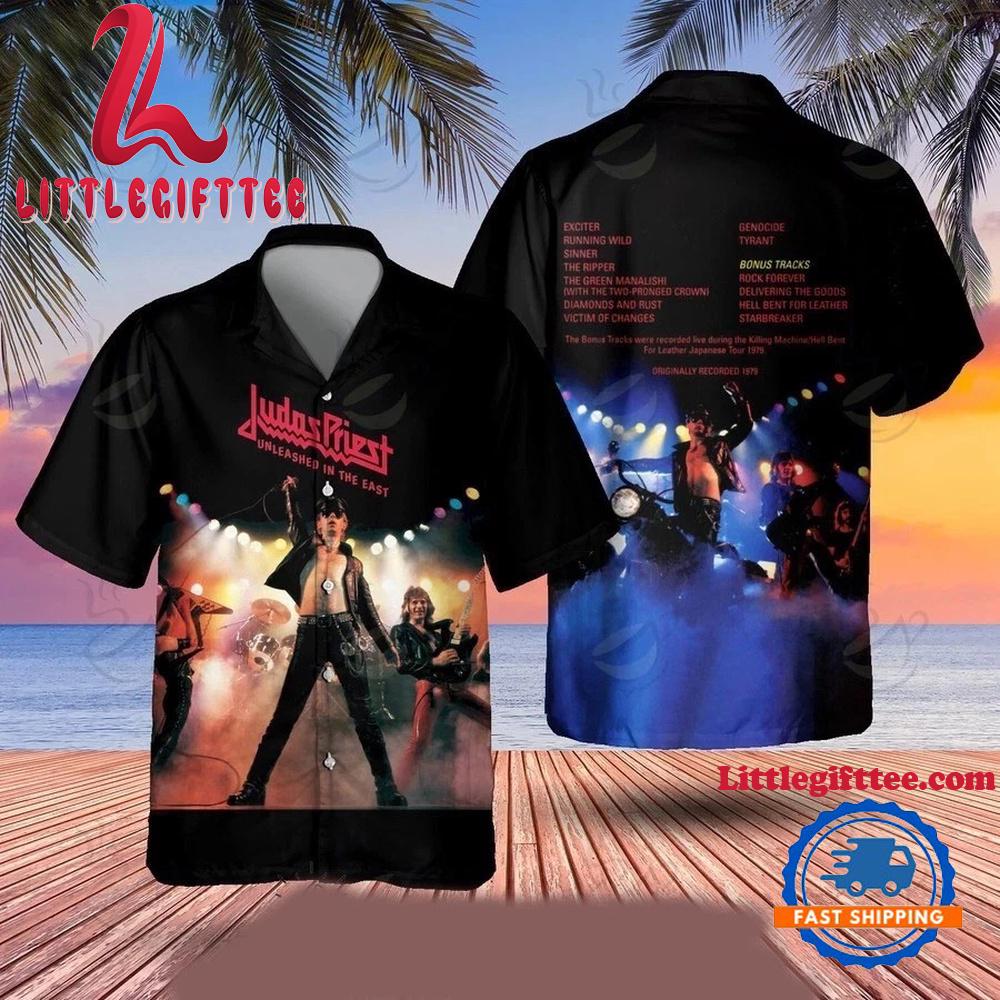 Judas Priest Live In Japan Album Cover Hawaiian Shirt Embrace tropical vibes with our Hawaiian Shirt, crafted from lightweight, breathable fabric for ultimate comfort. Featuring vibrant all-over prints and a relaxed fit, this shirt is perfect for vacations, summer parties, or casual outings. Add a touch of island style to your wardrobe today